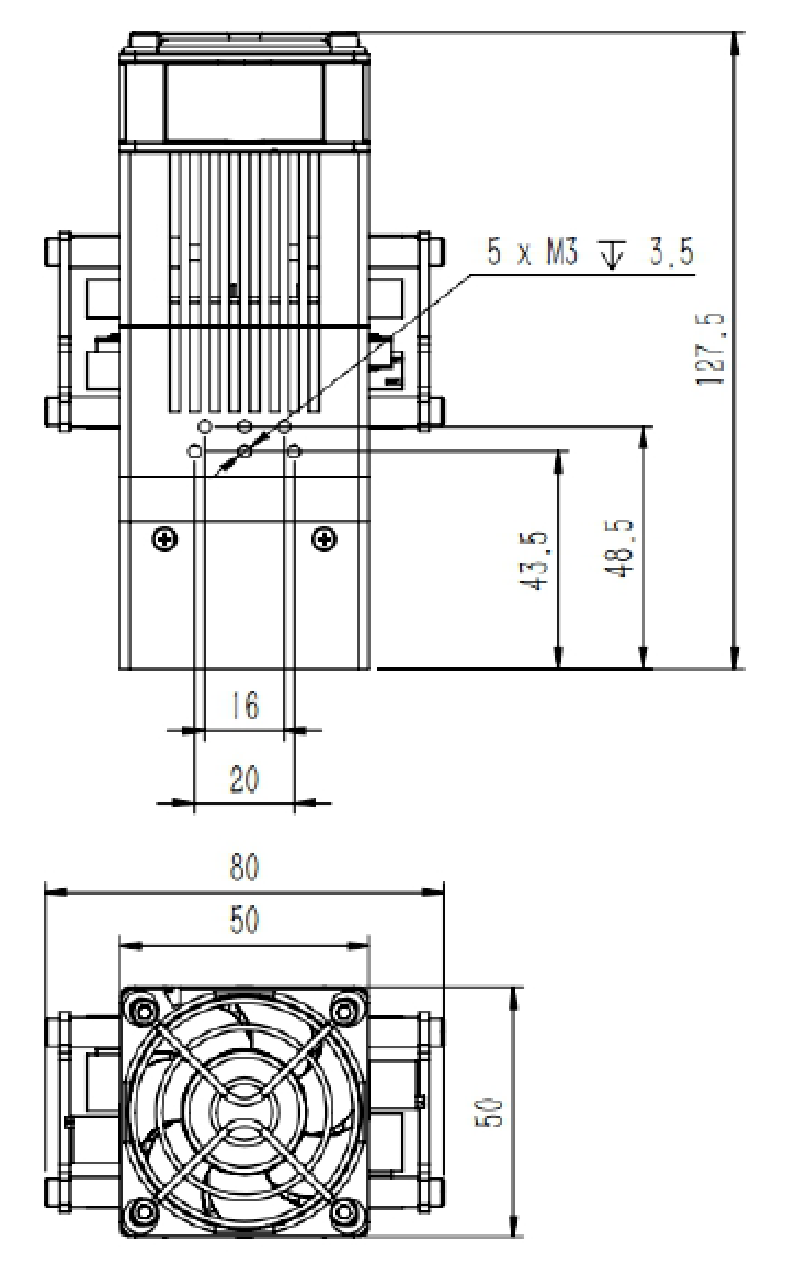 - Compact size 50*80*130 (mm) with fan and driver board.