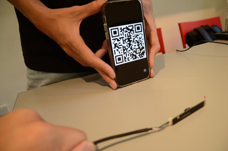 1. camera 1 scans detectable QR code