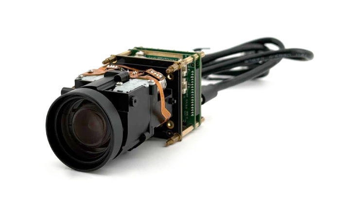 The visible camera module gave us 8MP resolution with motorized 10× optical zoom. The optical zoom capability was important for the use cases we had in mind: at long working distances, you need telephoto reach to visually confirm what the laser is pointing at. Digital zoom degrades the image precisely when you need it most — at range — so optical zoom was a hard requirement, not a nice-to-have.