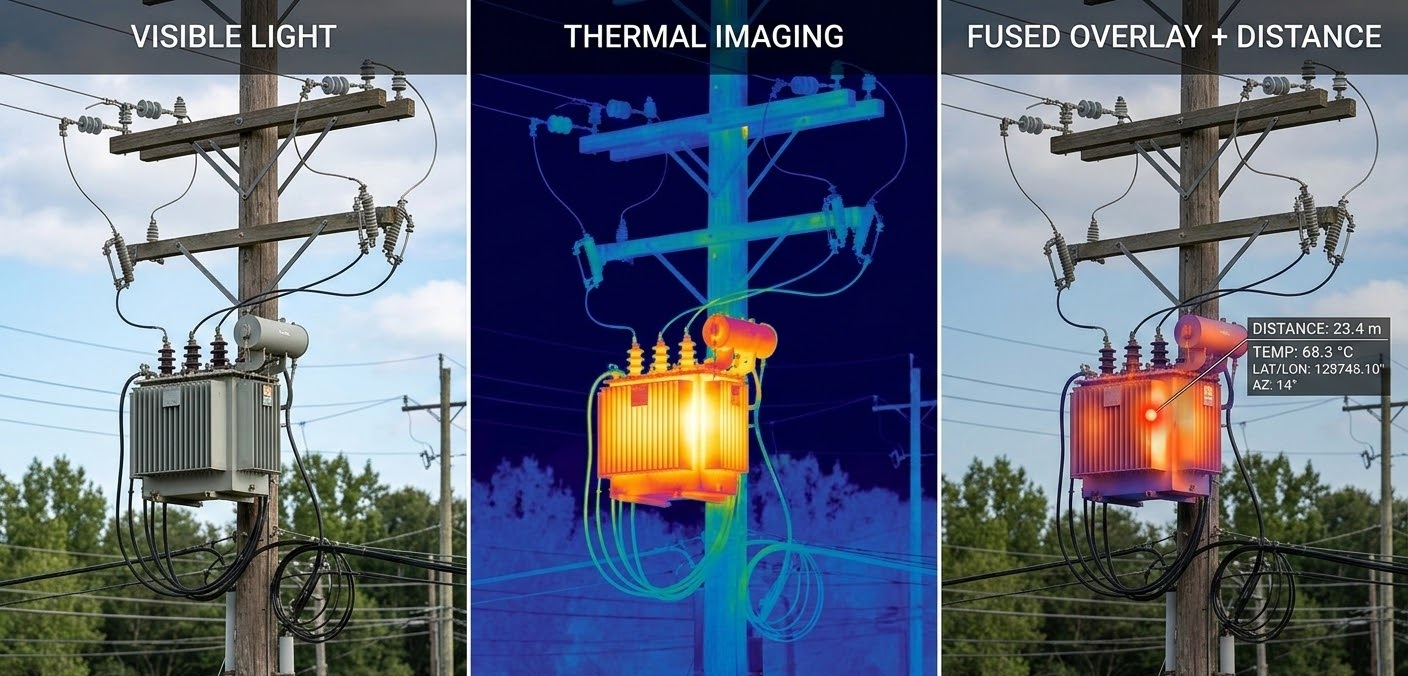 Precision distance measurement and multi-sensor imaging are both well-understood disciplines in isolation. What is less commonly documented is what happens when you try to fuse them into a single coherent system — one where a thermal anomaly, a visual confirmation, and a laser-measured distance all land in the same operator interface, derived from the same moment in time, without manual correlation.