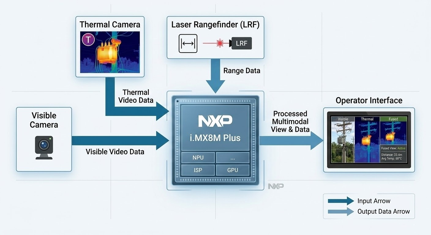 The starting premise was straightforward: a single-sensor system is always brittle at the edges of its operating envelope. A visible camera fails in darkness. A thermal camera lacks the spatial resolution for fine structural detail. A laser rangefinder gives you a distance but no context for what you just measured. Each sensor has a blind spot that another can fill.
