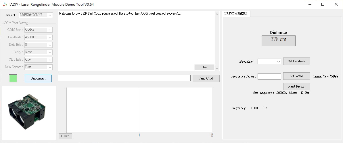 LRFX0M20KHS is a high-speed rangefinder module designed to deliver exceptional performance. Its maximum frequency can reach 20KHz, and users can configure the frequency from 20 to 20KHz through commands. With its compact size and lightweight design, it's perfect for seamless integration into various devices. This module is suitable for both indoor and outdoor use. We offer three measurement distance options: 50 meters, 150 meters, and 200 meters, catering to diverse needs. We also offer a customized version with an integrated red laser pointer. If you have any requirements, please feel free to contact us.